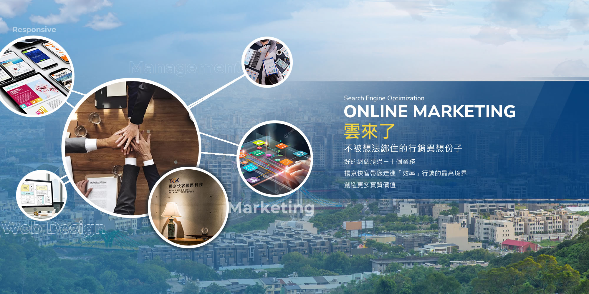 網路行銷設計一手包辦 - 揚京快客網路科技公司-30餘年在地經營經驗、人力規模200餘人~從平面廣告設計到網頁設計、網路行銷、程式設計、產品設計包裝、軟體研發、虛擬主機、空間代管、行銷資源行銷,皆是自營無一假手他人。